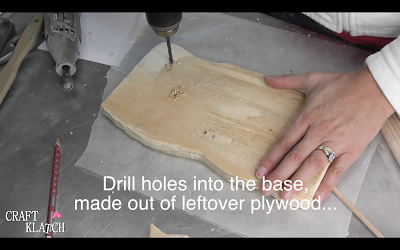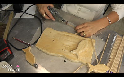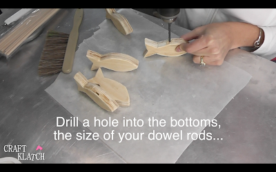 4. Drill holes into the bottom of the fish – the same size as your dowel rods. Mine were 3/16″.