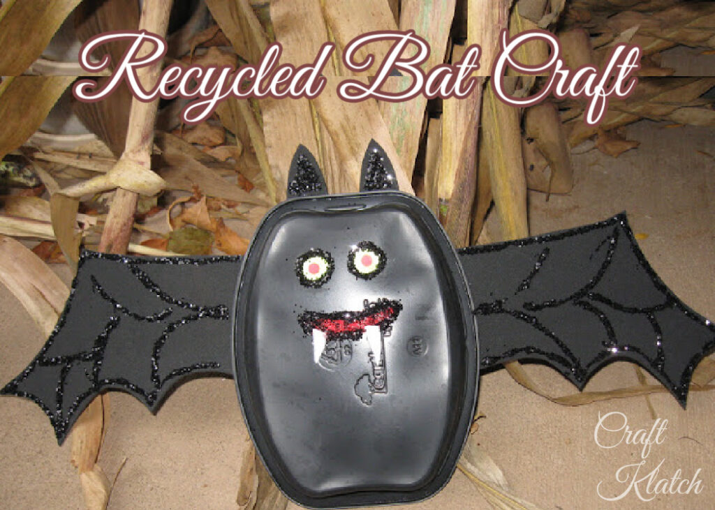 My husband came across this Recycled Bat Craft and thought I should give it a try. Instead of throwing the plastic TV dinner tray in the trash, it was turned into a Halloween decoration!
