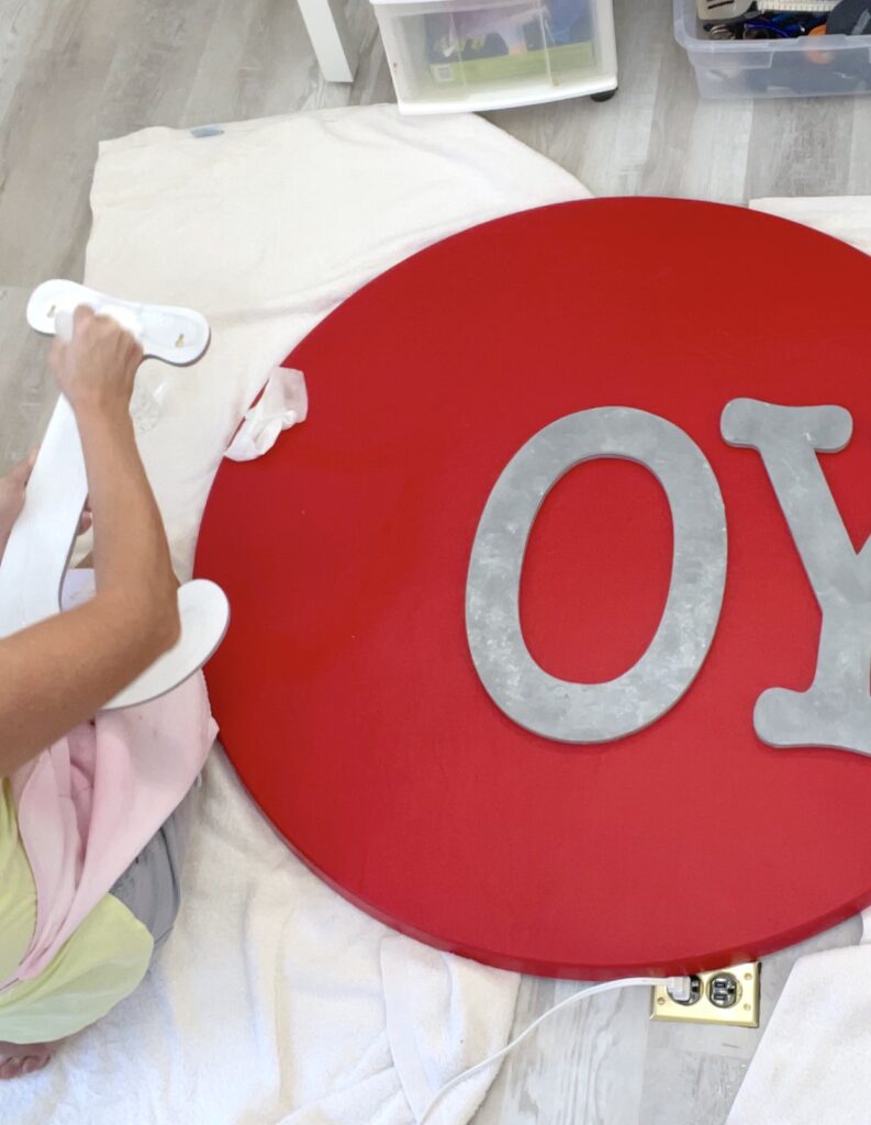 This oversized Christmas ornament needed oversized letters. I used the joy inspiration from this Nail Polish Ornament I made many years ago!