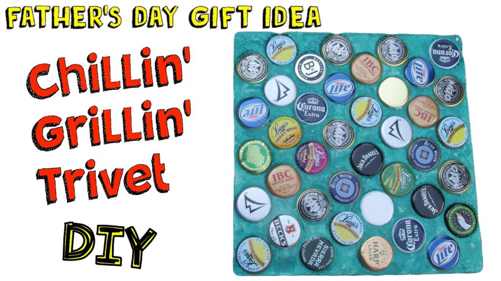 My idea was to surprise Dad with a handmade Chillin’ Grillin’ Trivet that you made just for him! Personalize it with his favorite beer or pop bottle caps. Add a little cement or concrete and you have yourself a Father’s Day gift in the makin’!