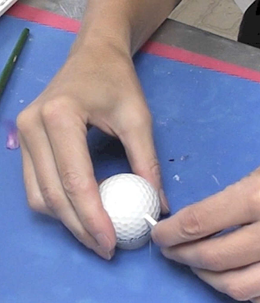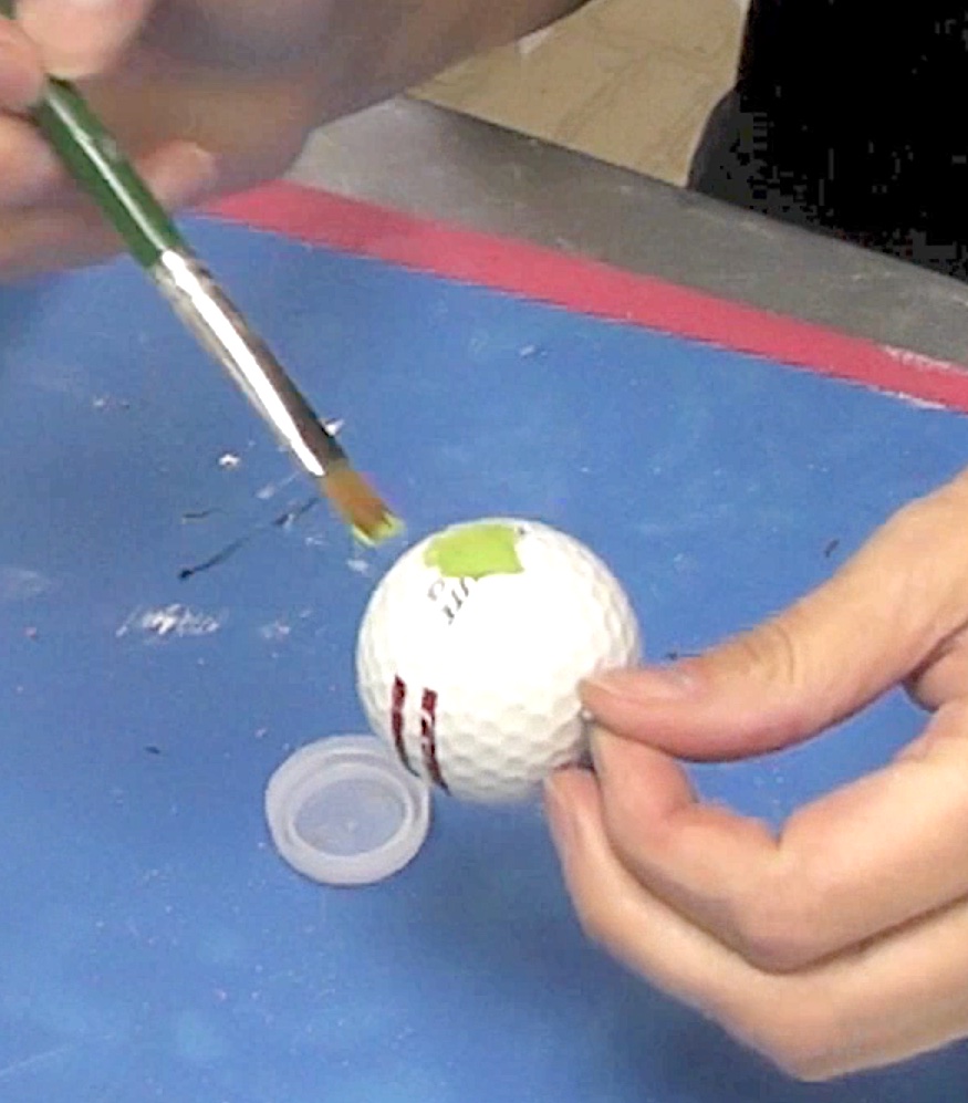 Paint the golf ball, including the nose, green. This will take a minimum of two coats. Allow it to dry