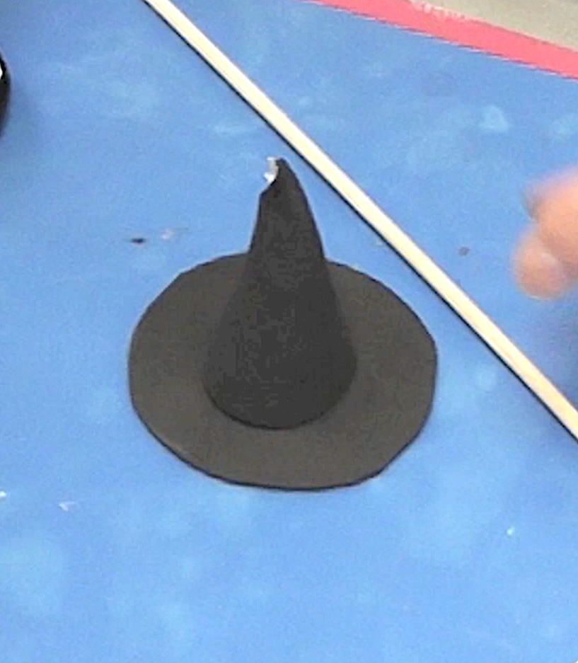 Have the two long ends meet and you will see it will create a cone. Glue those together. It will probably be messy, but don’t worry. We will cover all that up!