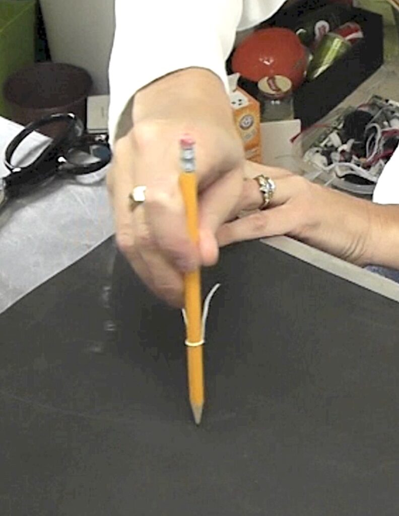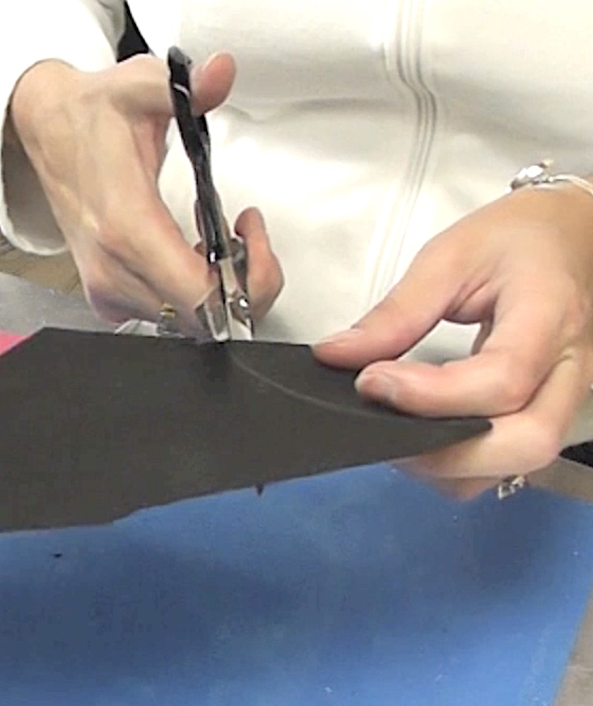 Take a pencil and tie a string to it. Put the string into the corner of the craft foam and draw a small arch. This is for the hat, so keep that in mind when you are deciding how big to make it.