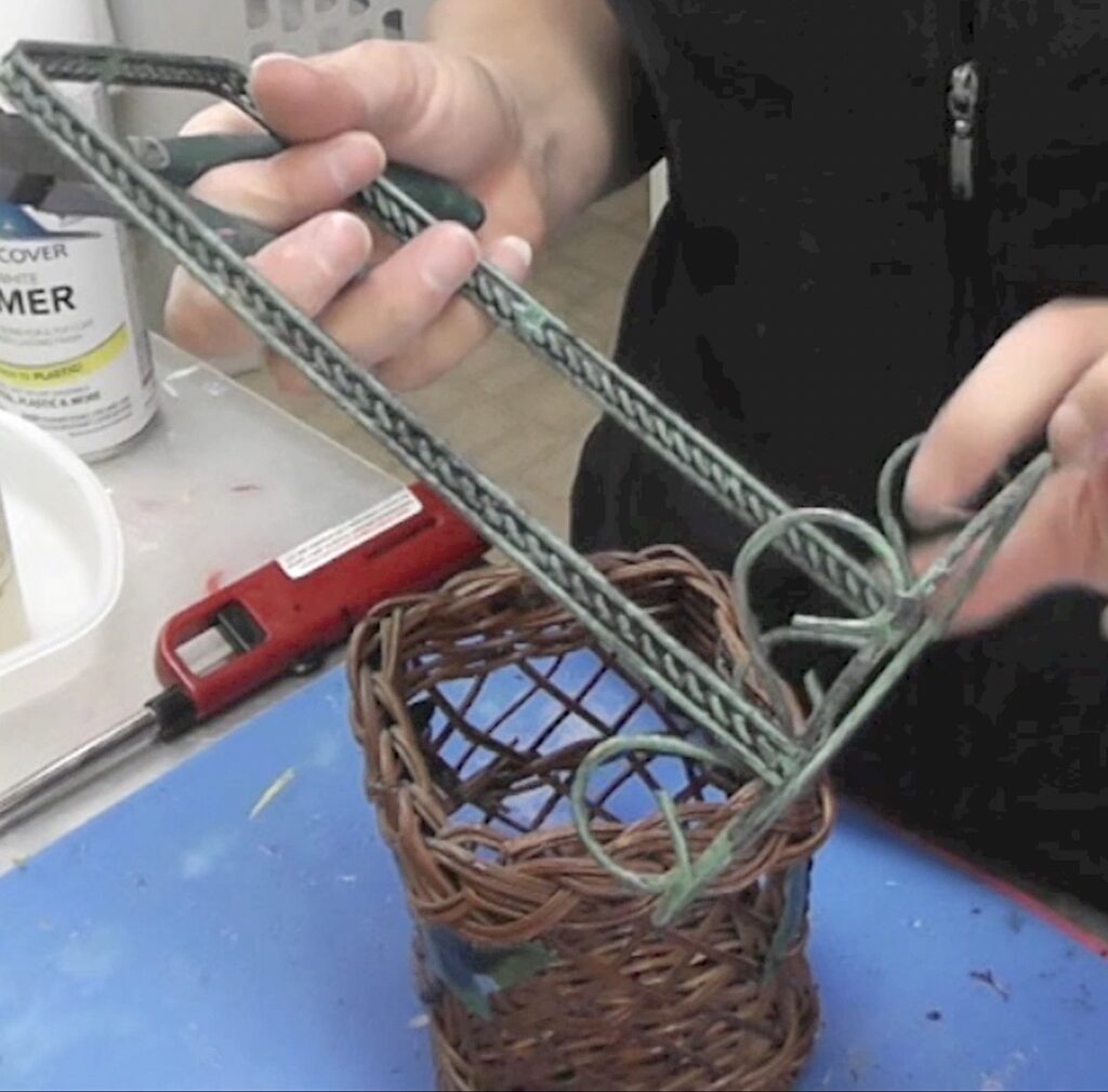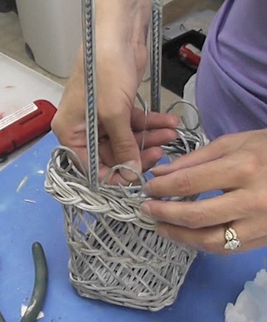 Remove the grapes and leaves off of the basket. In this case, the handle came off too. Then, clean it and dry it.