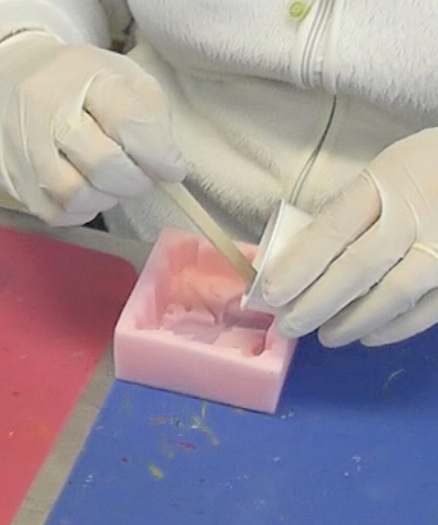 Make more resin and mix in some white India ink and pour it into the mold. Allow it to cure a minimum of 12 hours before removing it from the mold.