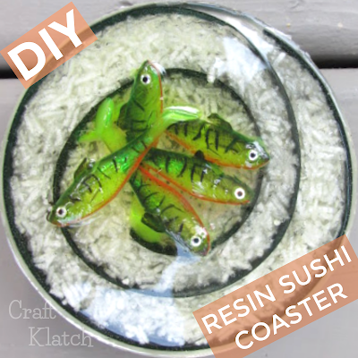 It’s a fun and whimsical coaster that is a great gift for the sushi lover in your life. I going for a California roll look, but didn’t want to be boring with the crab and cucumbers in the middle. Since sushi is all about the raw fish, I bought some fake fish bait and used it instead.