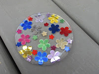 Oriental Trading was kind enough to send me the flower jewels. If you have never shopped there, you should check them out! I decided I would make a coaster using those jewels.