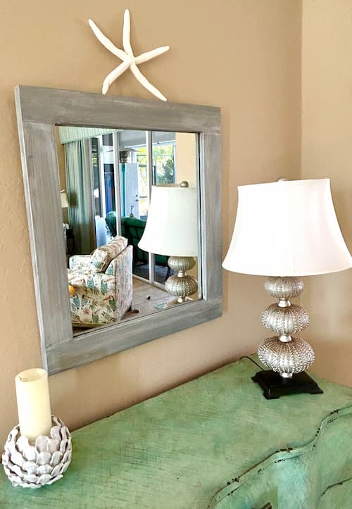 I’m going to tell you, it’s a creative and affordable way to add a statement piece to your wall and this one fits perfectly with our summer home tour decor ideas.
