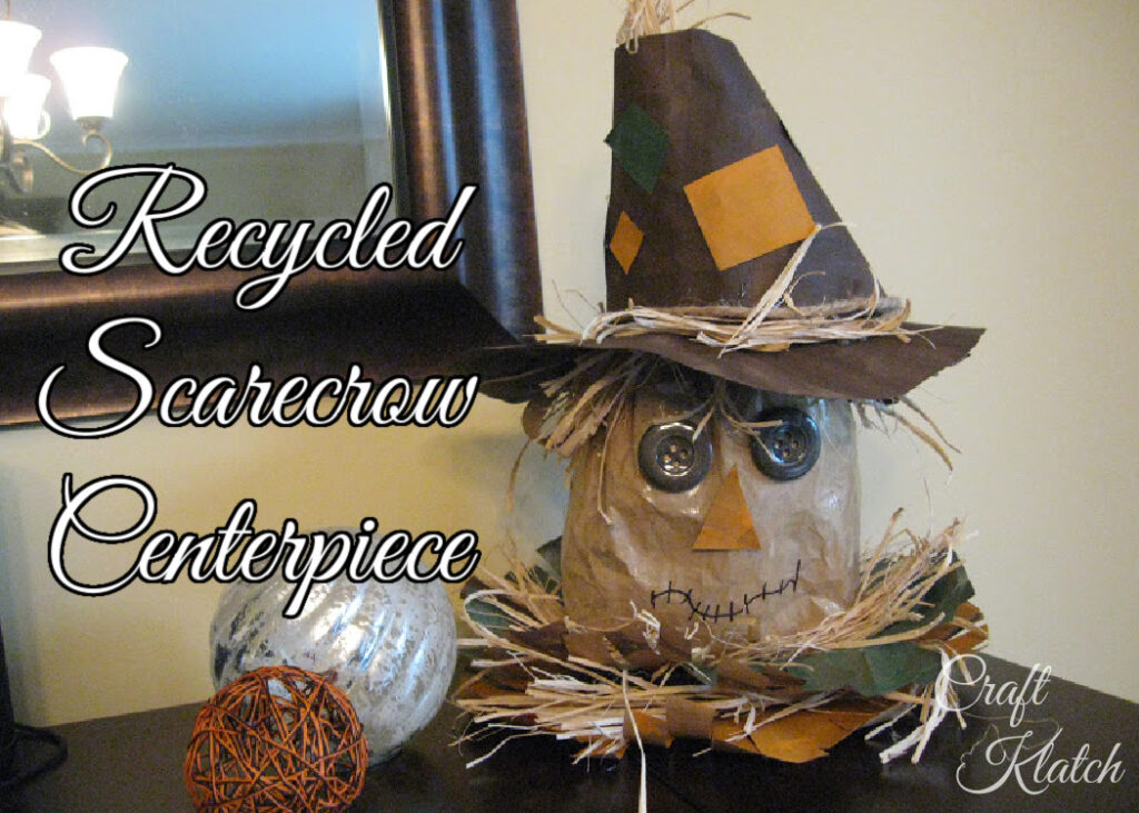 Give your fall table a festive touch with this easy DIY scarecrow centerpiece made from recycled materials!