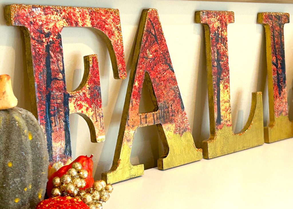 Learn how to decoupage wood letters for fall crafts using Mod Podge to create a fall scene.
