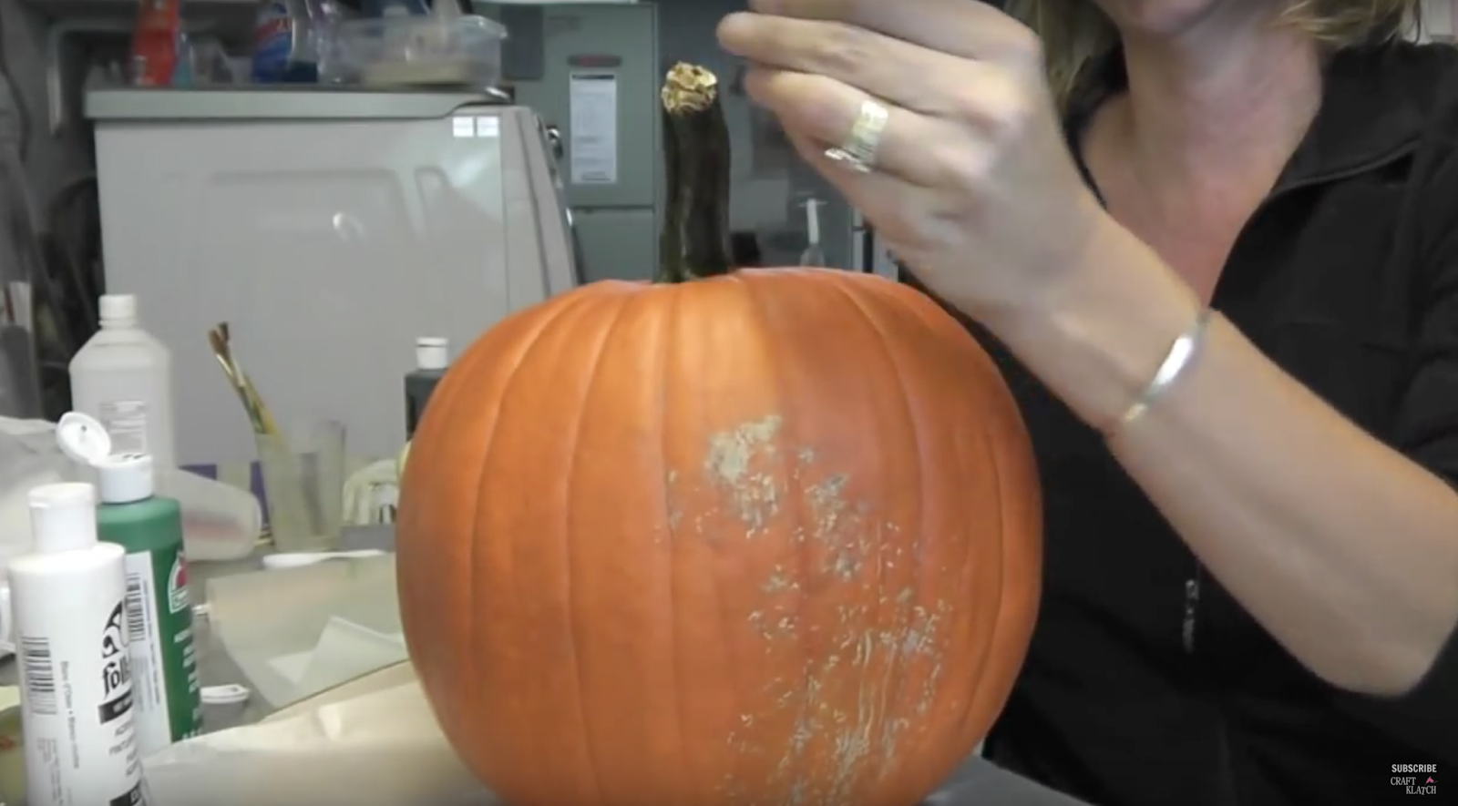 Find a pumpkin with a nice stem. You are going to use it laying on its side because the stem will become the nose.
