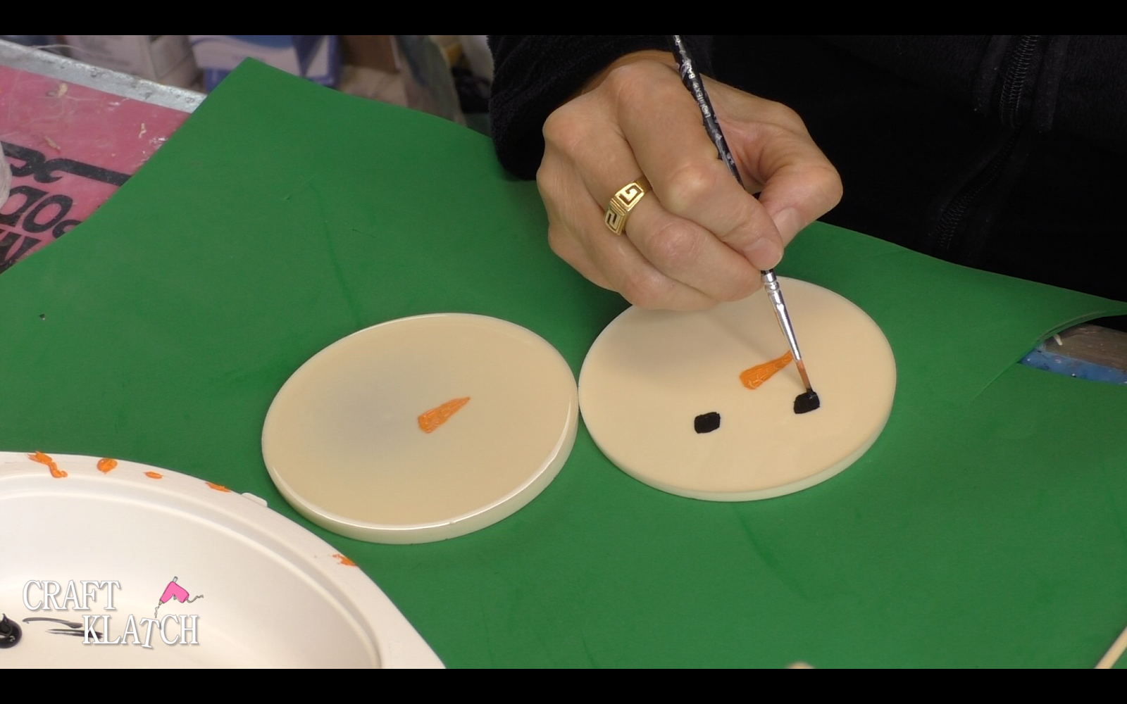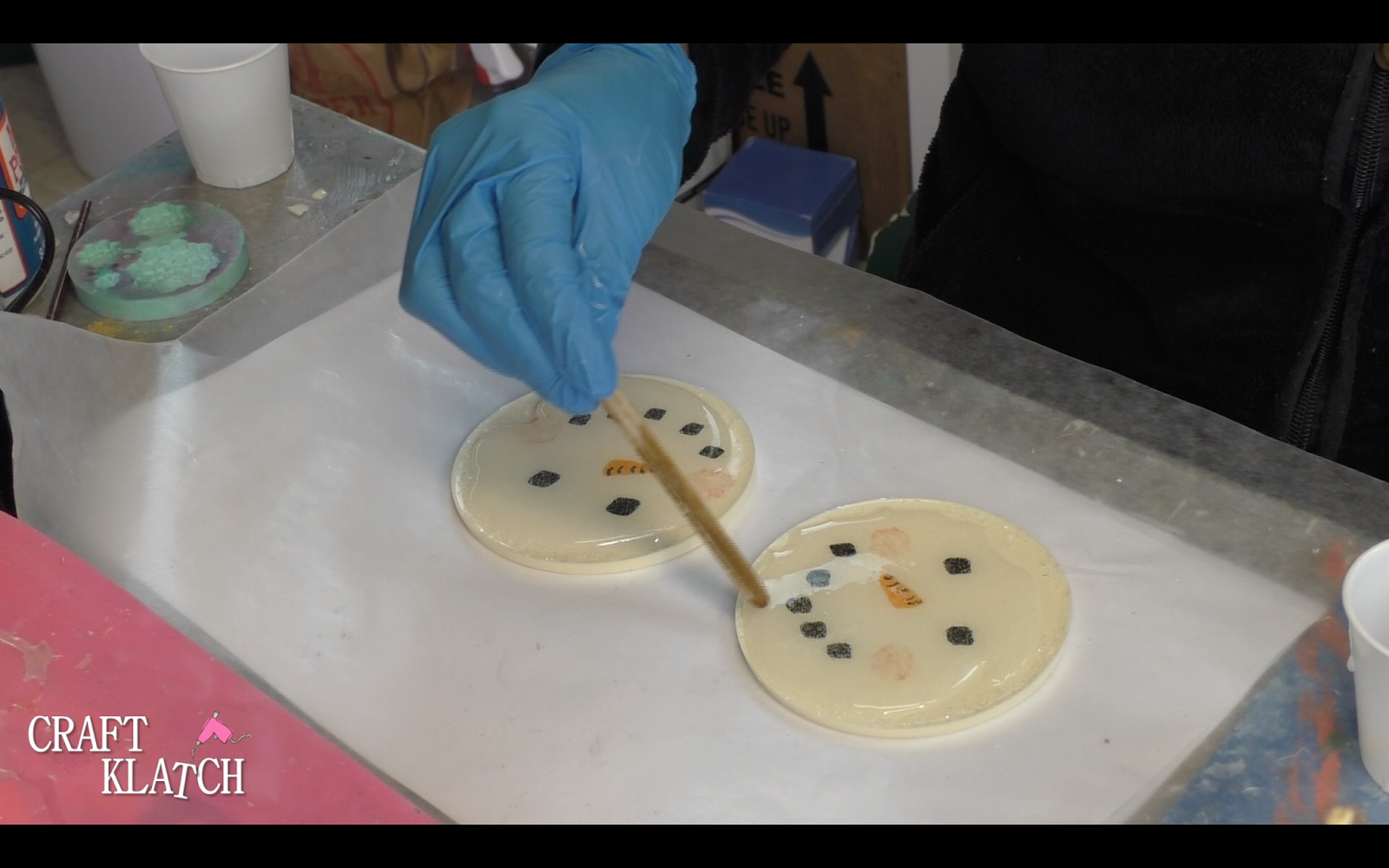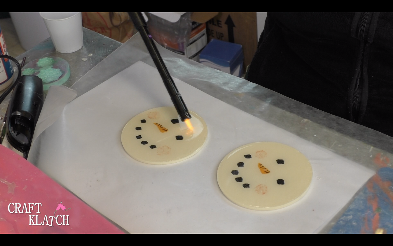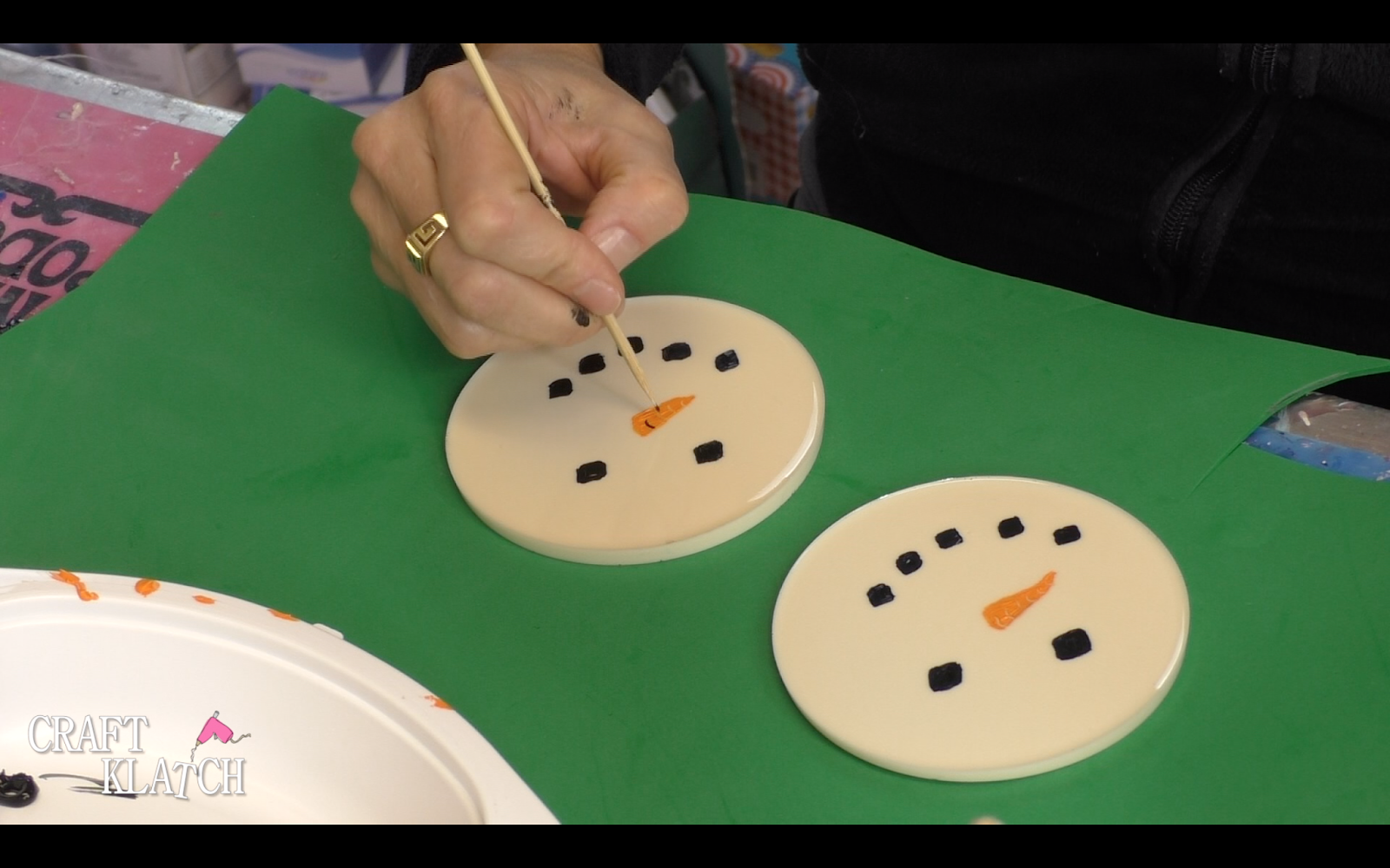When cured, remove the coasters from the mold. And now it’s time to take the white discs and turn them into a fun snowman craft.