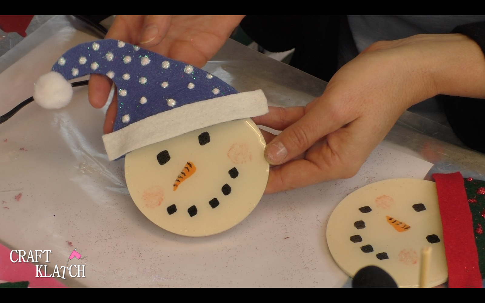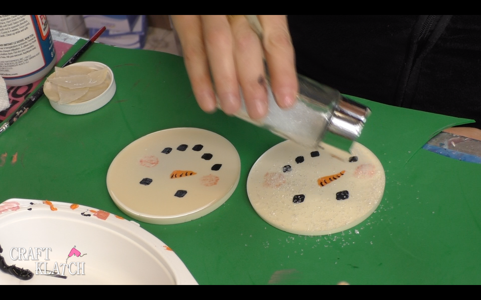Shake off the excess glitter and you have an adorable snowman craft with a cute cap! And it functions as a coaster!