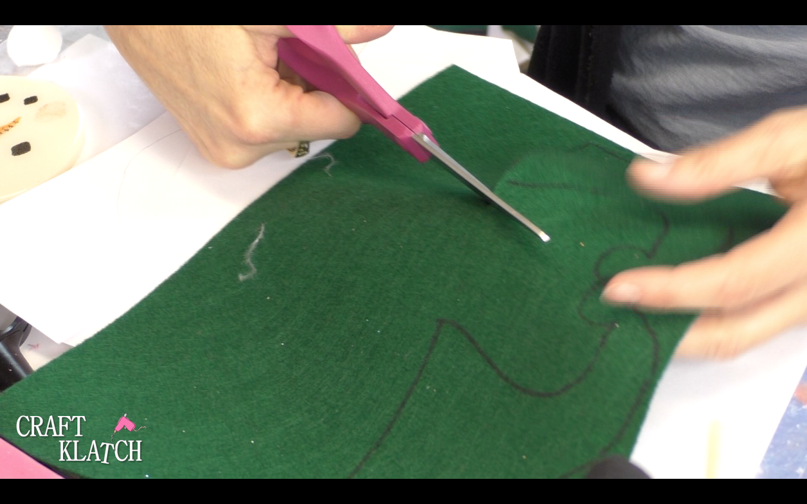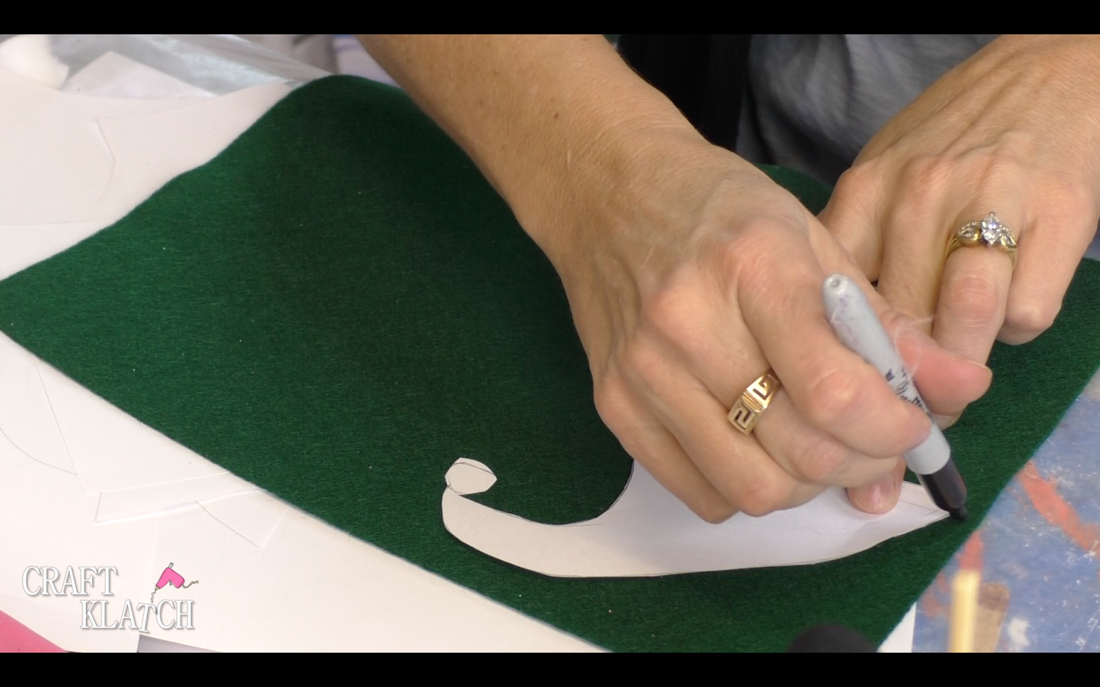 Cut out the cap template and then trace around it onto felt and cut it out. You want to do that twice.
