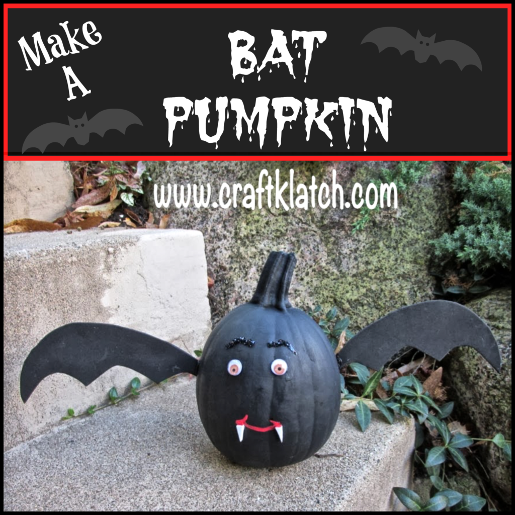 This Bat Pumpkin is great for small to medium sized pumpkins. The bat wings are out of easy to cut craft foam and there is a glitter on the eyebrows to give him a little extra zing!