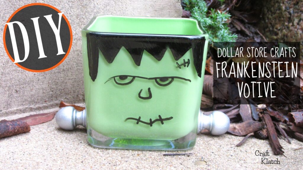 A square votive is a perfect base for a square Frankenstein Votive head! He’s a cute character to add festive flair!