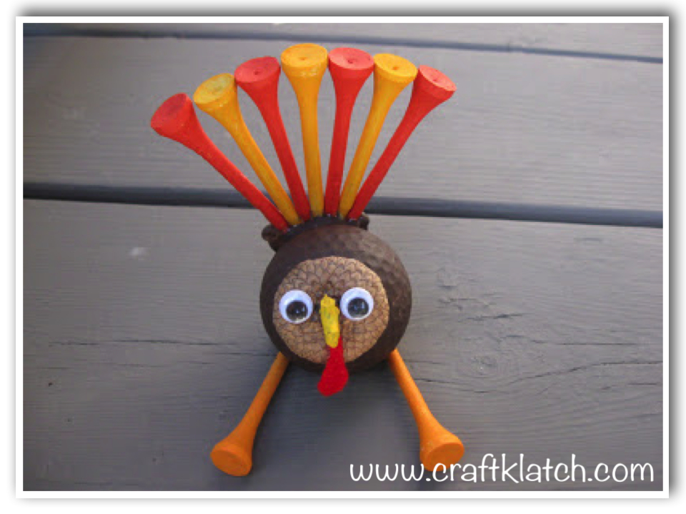 This cute little Golf Ball Turkey is a perfect adornment for your Thanksgiving table! The kids can collect acorn caps and paint the turkeys!