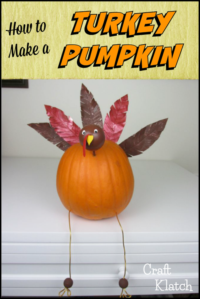 Thanksgiving needs a good decoration and this Turkey Pumpkin puts the turkey in your fall decor! Kids can craft this turkey with a little help. I used old soda cans for the feathers, but construction paper would work just as well!