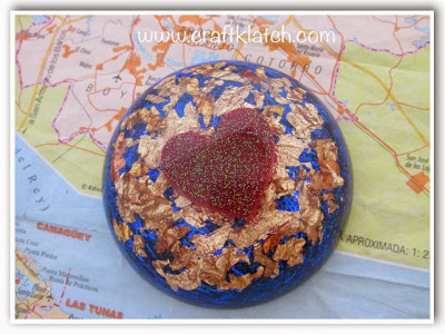 Make a glitter heart and gold leaf paperweight. This project adds a touch of luxury to your desk or makes a thoughtful and elegant gift.