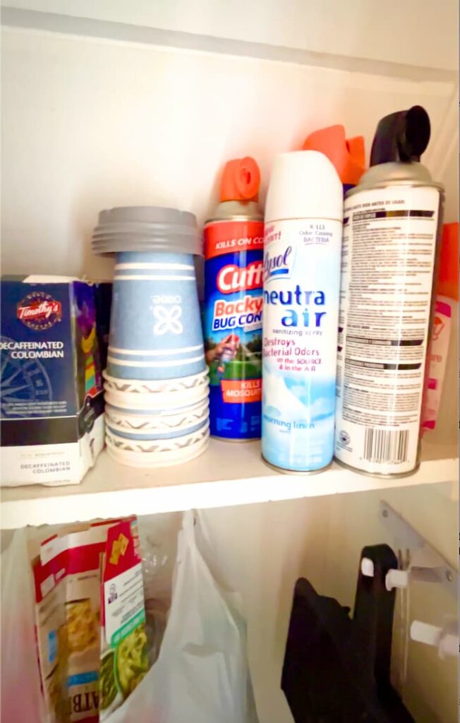 the coffee was next to the bug spray…was next to a mouse trap (yikes)…was next to bags of recycling…and don’t forget about the trash, the brooms, the grilling utensils, and fly swatters.