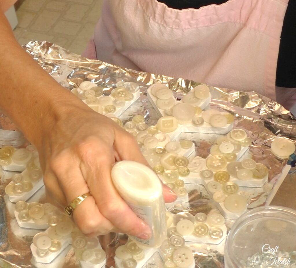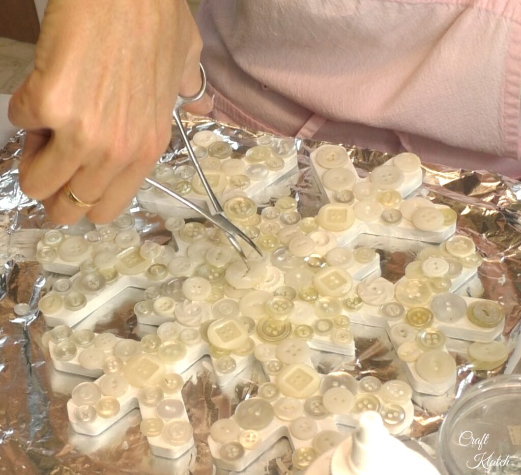 I painted the edges with ivory and pearl white paint, just so it blended better with the buttons.