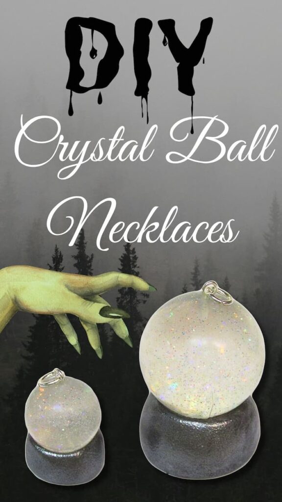 Make a DIY crystal ball necklace using resin, glitter, and clay. A fun Halloween craft that’s magical, sparkly, and easy to customize!