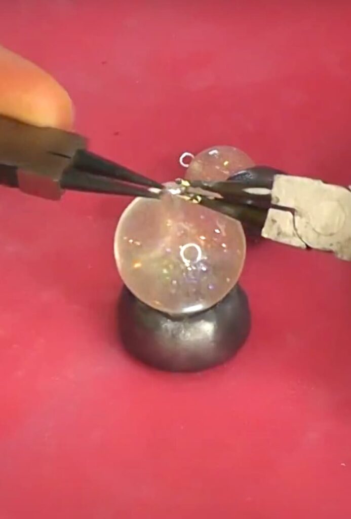 Attaching an eyepin and jump ring to the crystal ball necklace