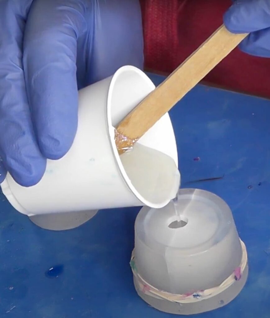 Pour the mixture into your sphere mold—filling it slightly above the rim—and let it cure for at least 12 hours.