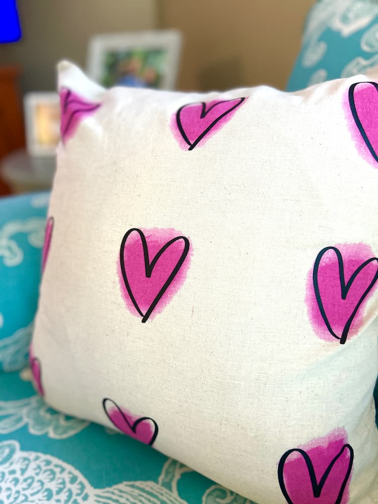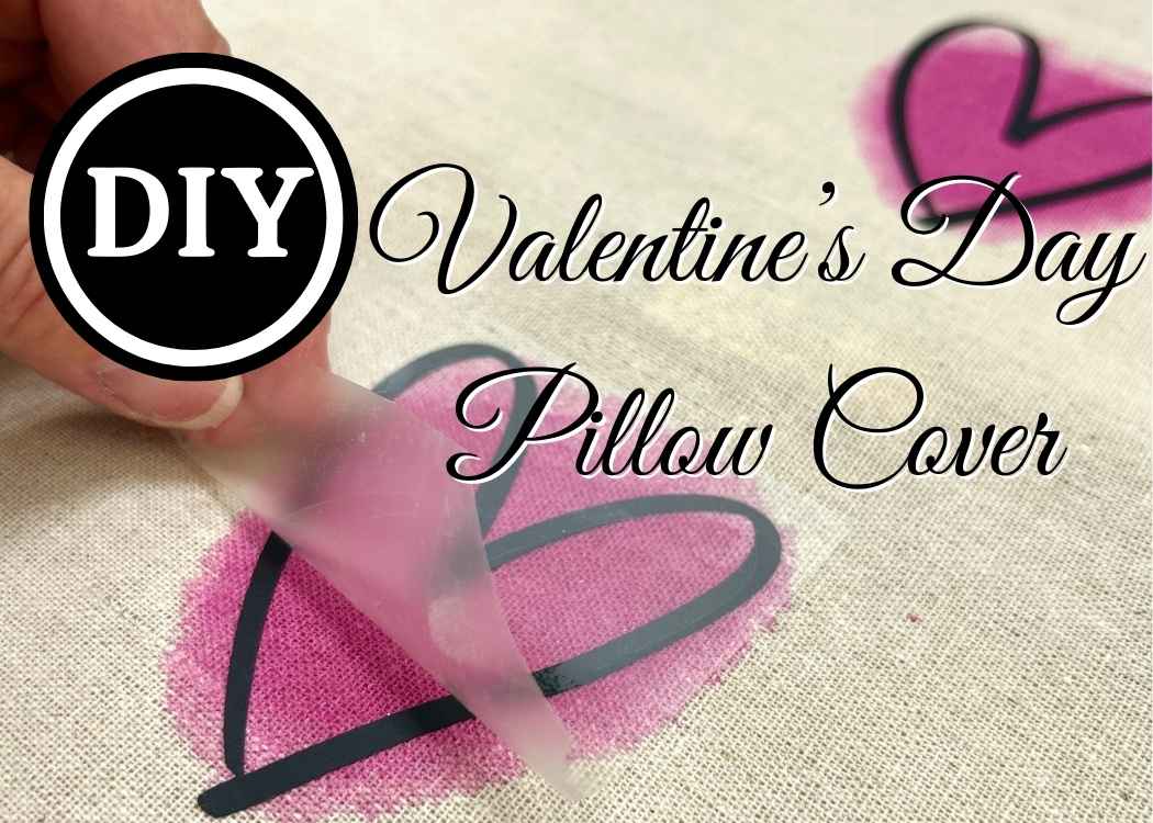 Create a charming DIY Valentine’s Day pillow with this easy tutorial featuring painted hearts and vinyl designs. Perfect Valentine home decor!