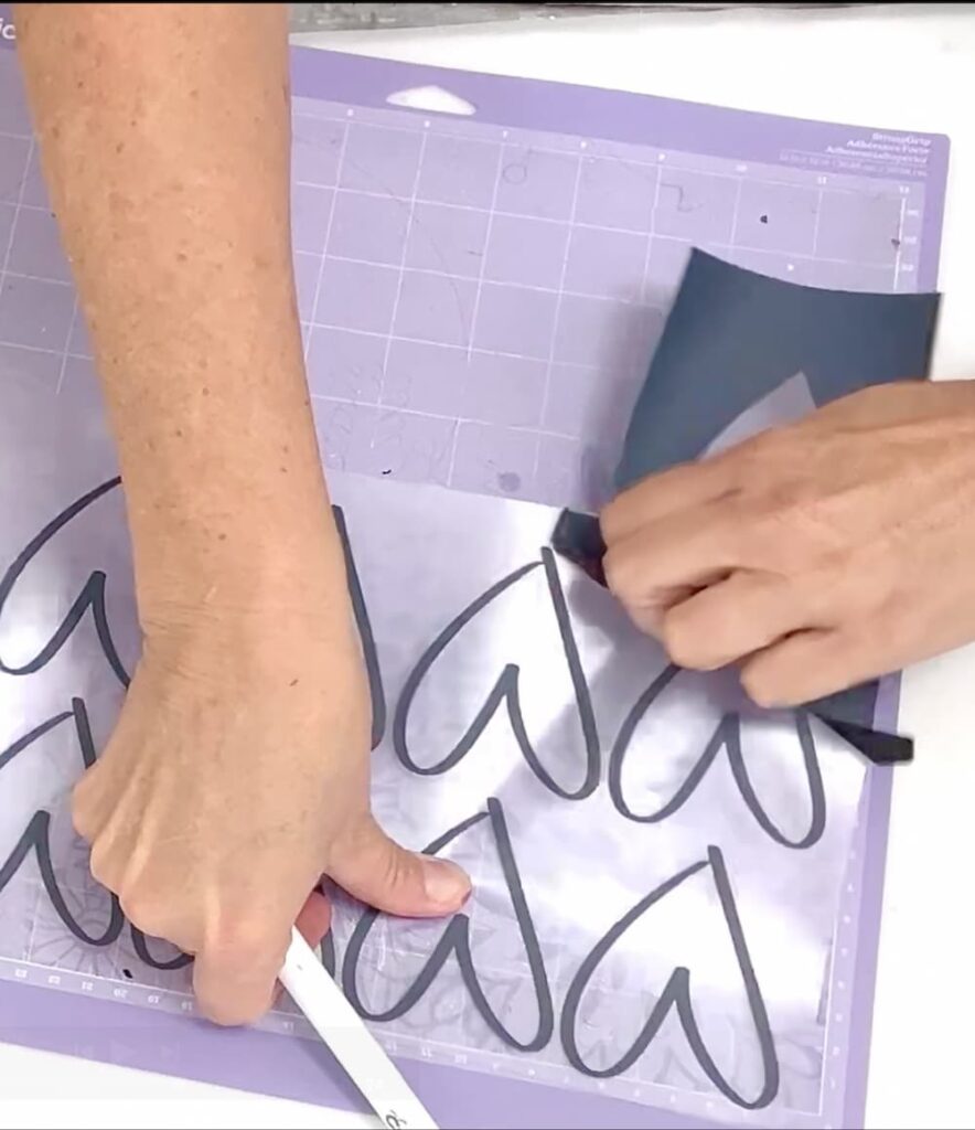 Once they were cut out, I weeded out the excess vinyl, then cut the hearts into individual pieces.