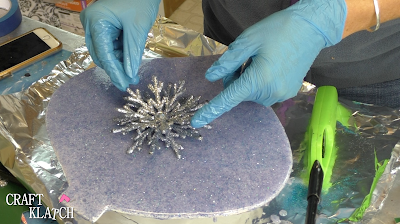 Arrange your snowflake embellishments and the main centerpiece ornament in the resin, while it’s still wet.