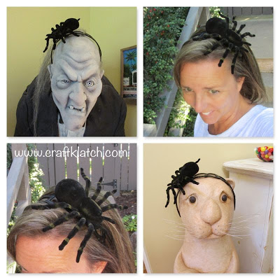 1. Take the spider and put hot glue on the underside. Put it on the headband – I liked it off to the side rather than right in the middle.