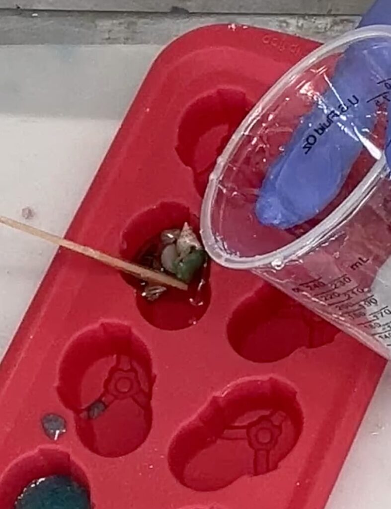 I added tiny shells to the leftover resin and poured it right into the mold. It’s a great way to avoid waste and make a mini project at the same time.