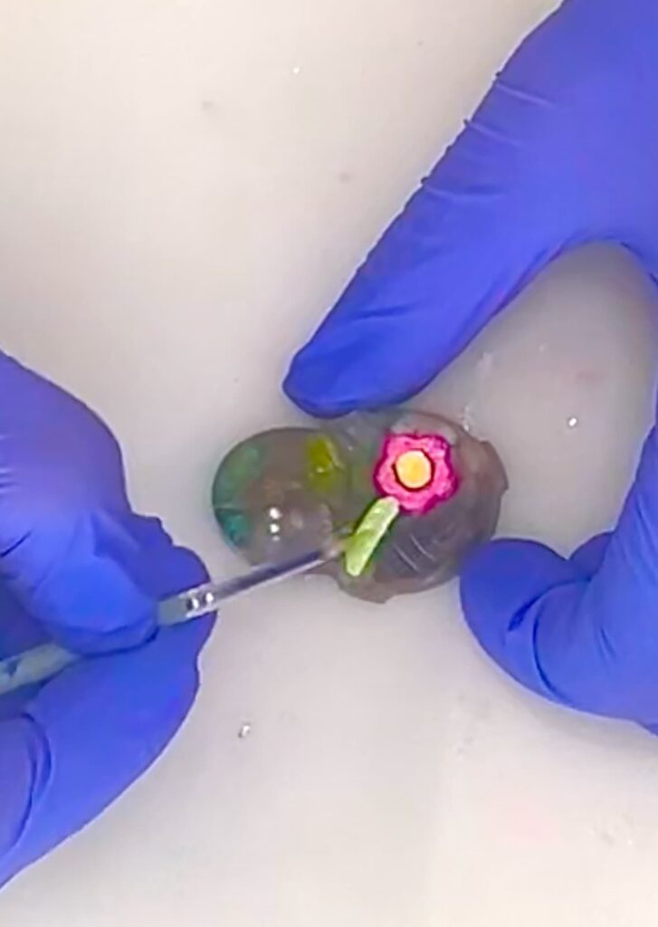 The flip-flop has some raised details that I wanted to paint. I painted the flower pink and yellow, and for the strap, I used lime green.