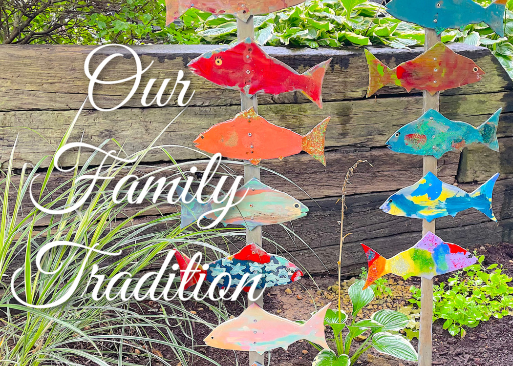 Our fish sticks live outside in the garden all summer. The kids come up and get excited to see them in our flowerbeds and they talk about the fish from the past years and which is their favorite.