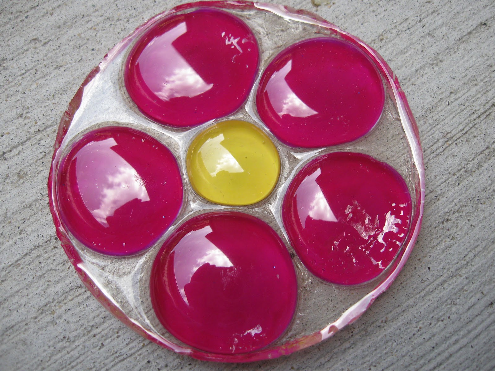 5. Pour resin over stones. I covered everything in resin, but did not make the top flat (which you can and it would be equally as pretty). My thought was that the stones I chose were all very similar in height and I could keep a more three dimensional look and still have it be a level surface to put a cup or glass on. Had my stones been more different, I would have filled it further.