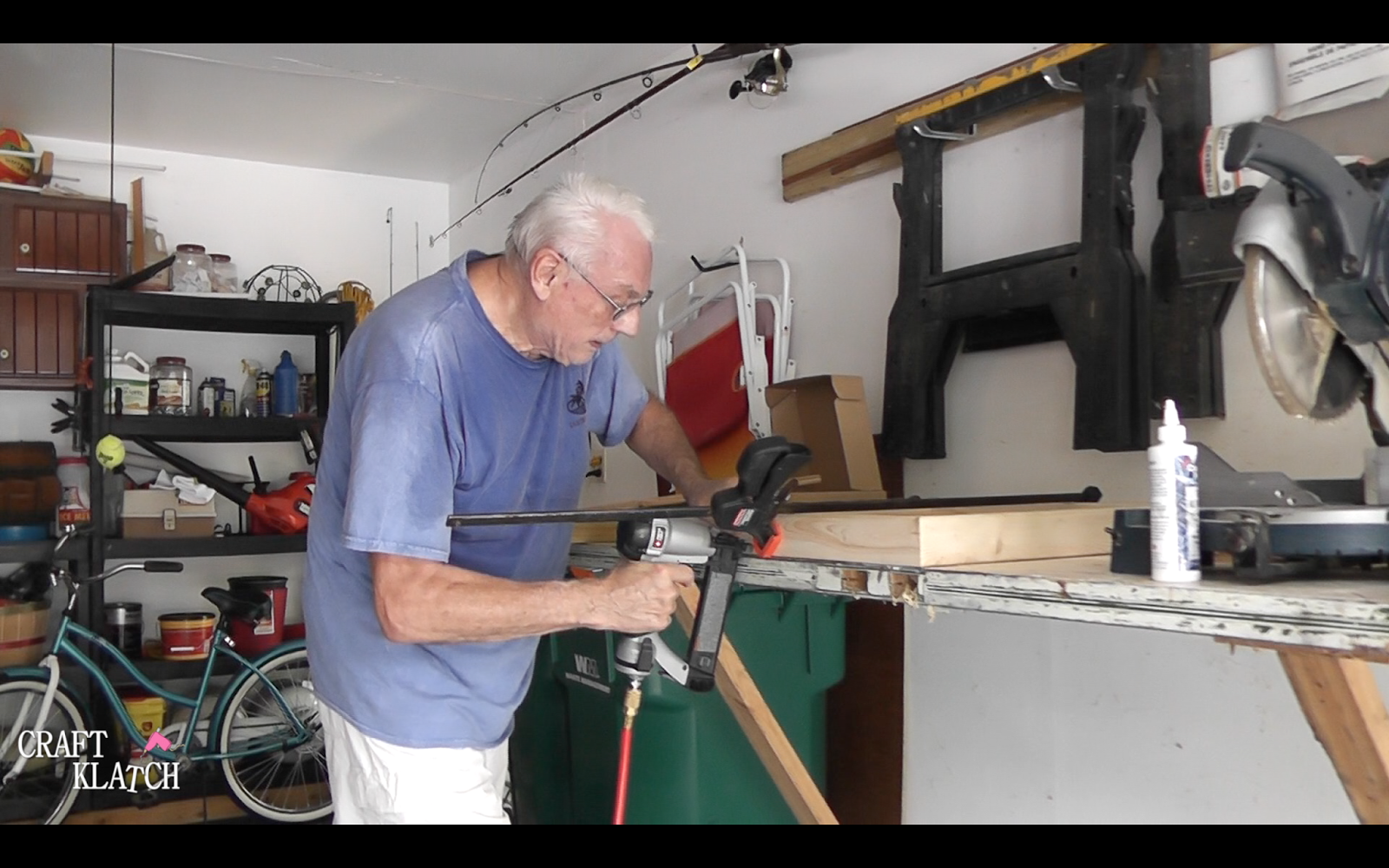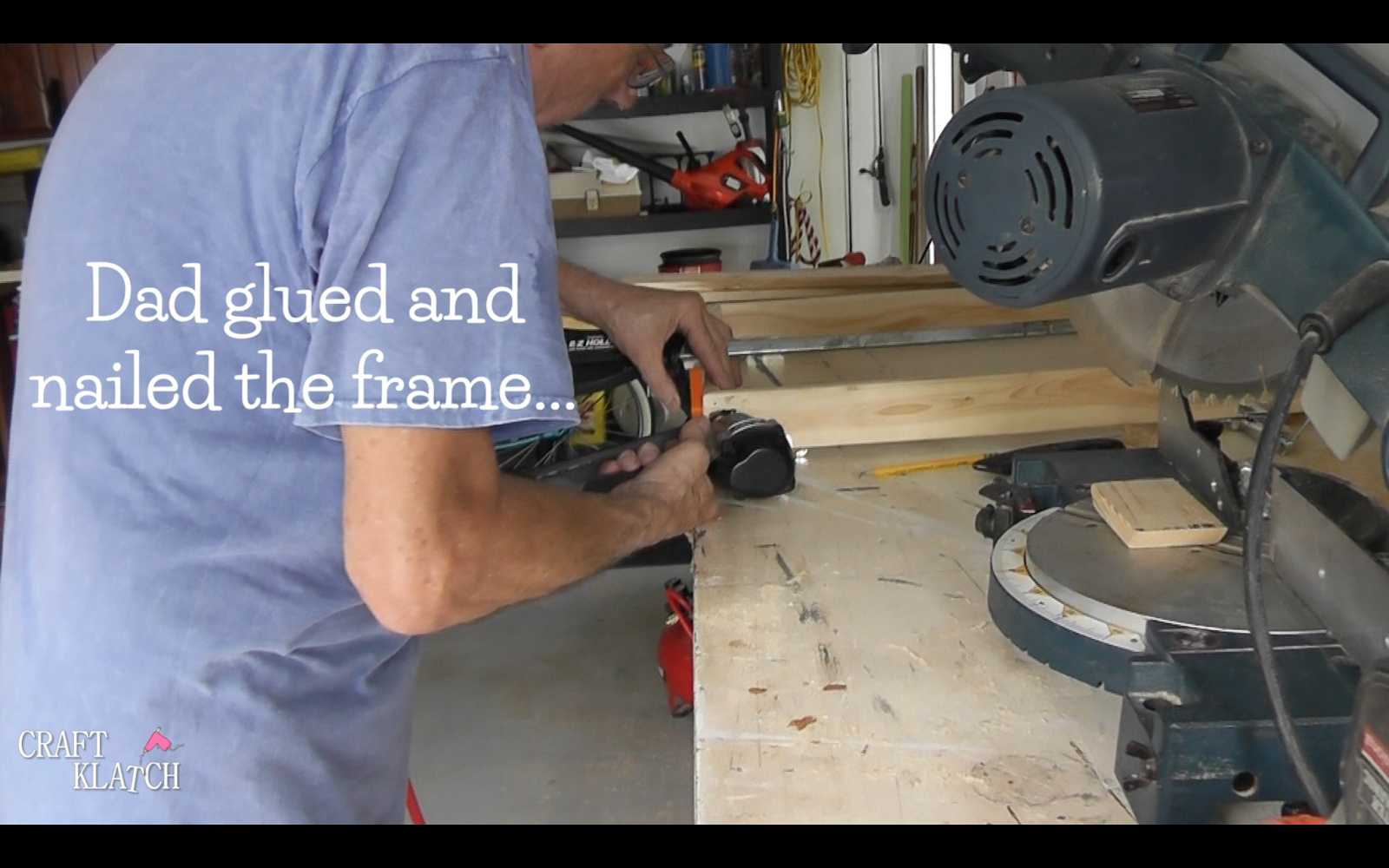 4. He built a frame with the 1″ x 2.5″ piece of wood. He glued it and nailed it together.