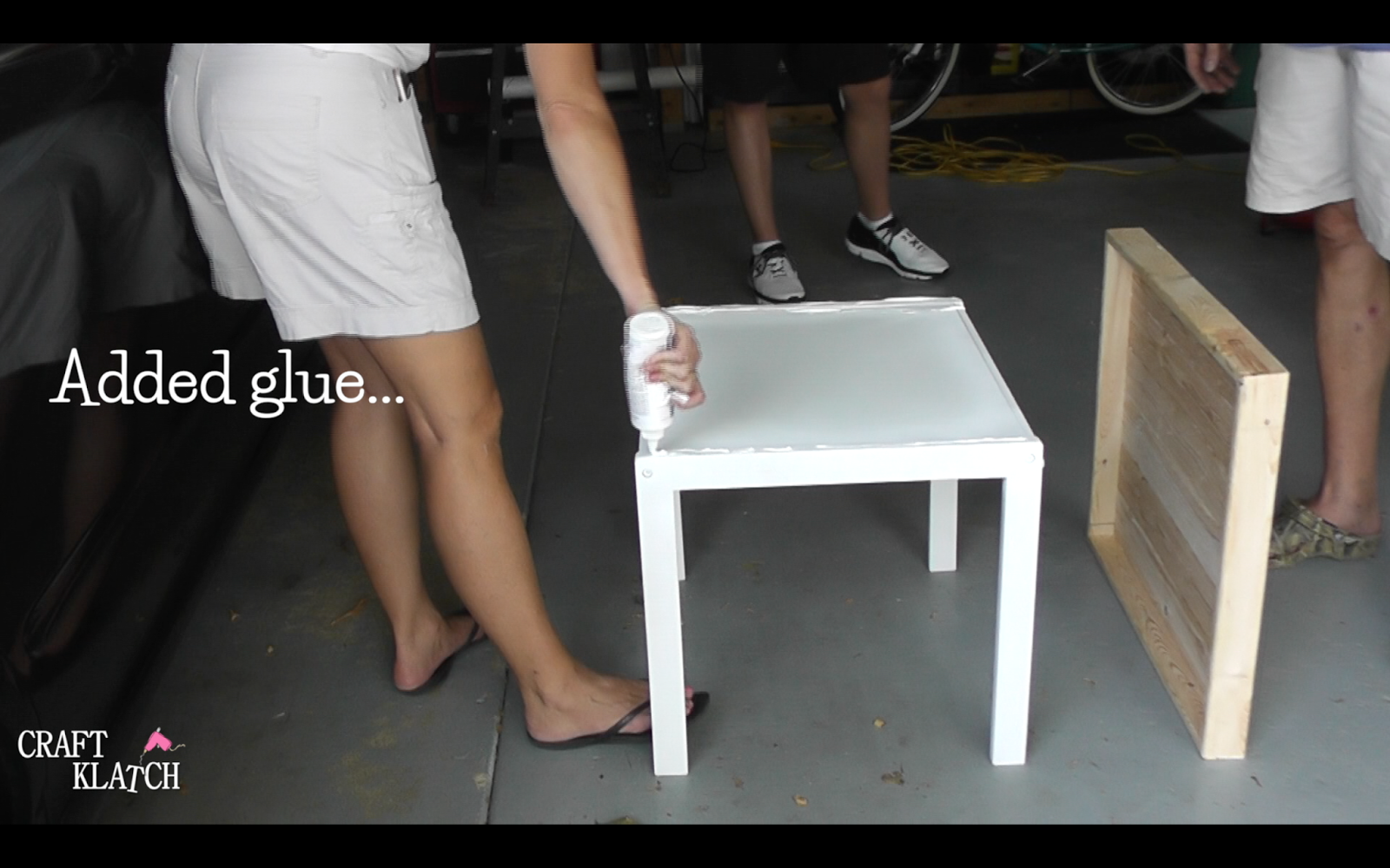 7. That created the table top. It was then glued and nailed into place on the painted table.