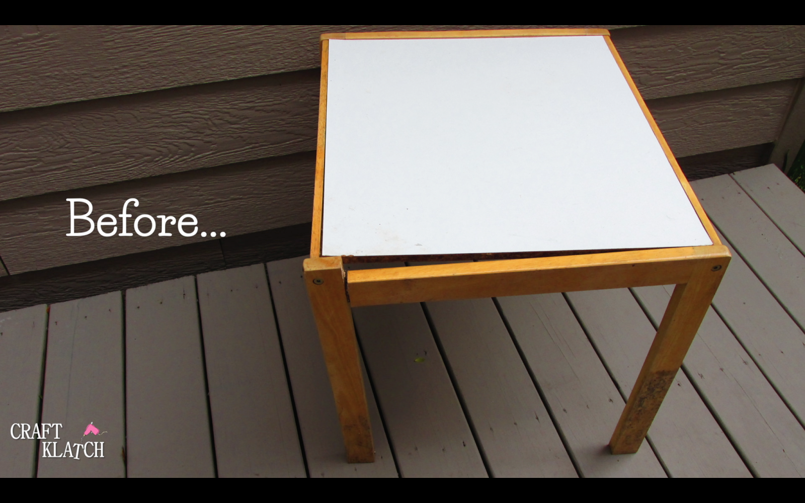 1. Find a table and clean it up. If it needs repair, be sure to do that first. I used bleach because I felt it really needed it.
