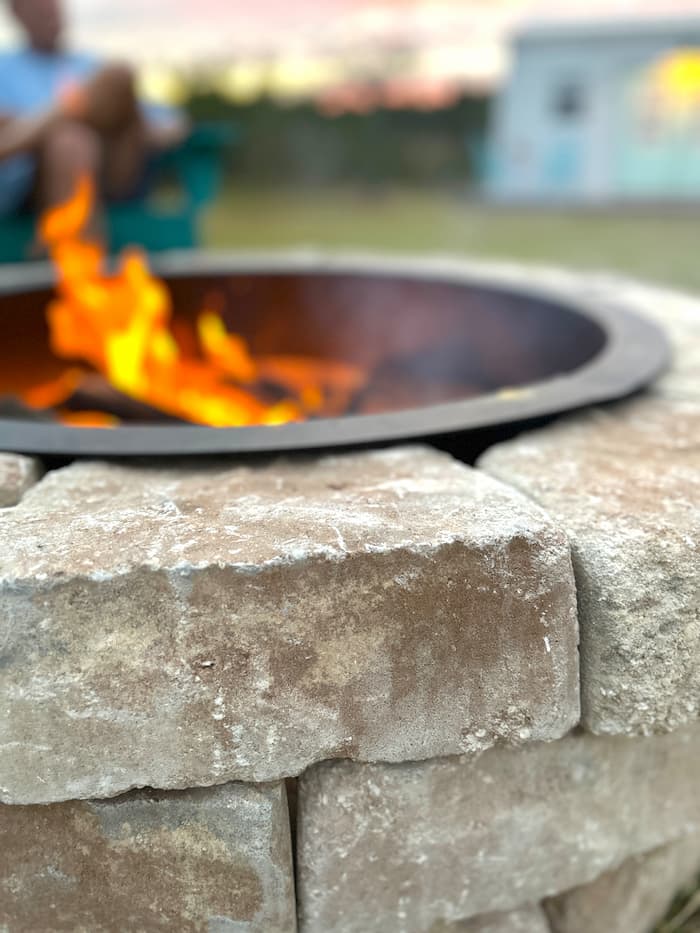 Greg and I had many discussions and debates on how to build a firepit and we found the perfect solution with the Veranda Firepit Kit from Lowes.