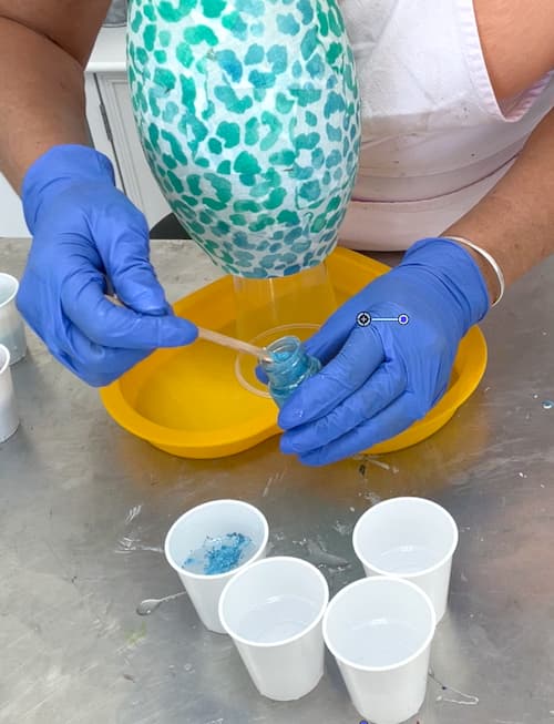 Mix 8 oz of resin according to the manufacturer’s instructions. Divide the mixed resin into 6 small cup,,or if you are using fewer colors, use fewer cups.