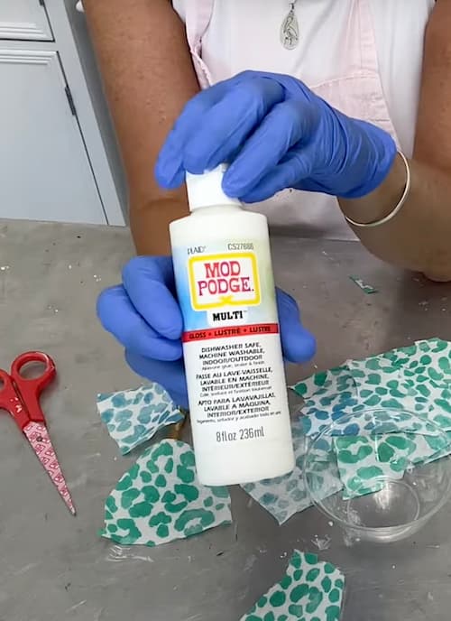 Pour some Mod Podge Multi into a small bowl. Apply a layer of Mod Podge to a section of the vase.