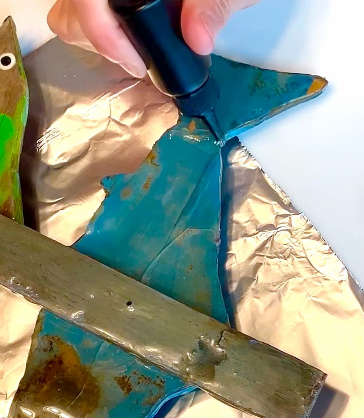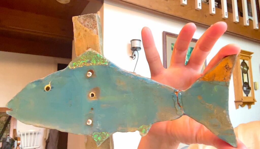 These fish sticks are more than just decor — they are memories covered in resin. When Greg was placing them for the season, one slipped ad the tail snapped right off. It was heartbreaking but I knw we could bring it back to life.