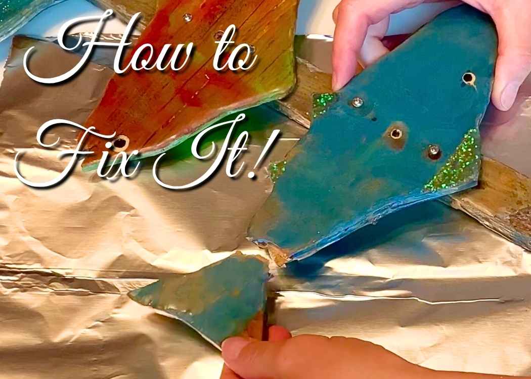 In the case of my fish, there is a lump where I fixed it but I plan on doing a refresher resin coat over the fish and then you won’t see the repair.