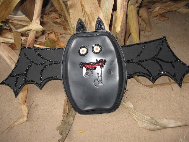 My husband came across a wall of these bats, when he was at a meeting, at a local school. He snapped a picture of it and thought I should share my interpretation of this great craft! How great does that whole grouping of them look on the school wall? So, I can’t take credit for the idea. But, it is a great craft for kids and a great recycling craft!