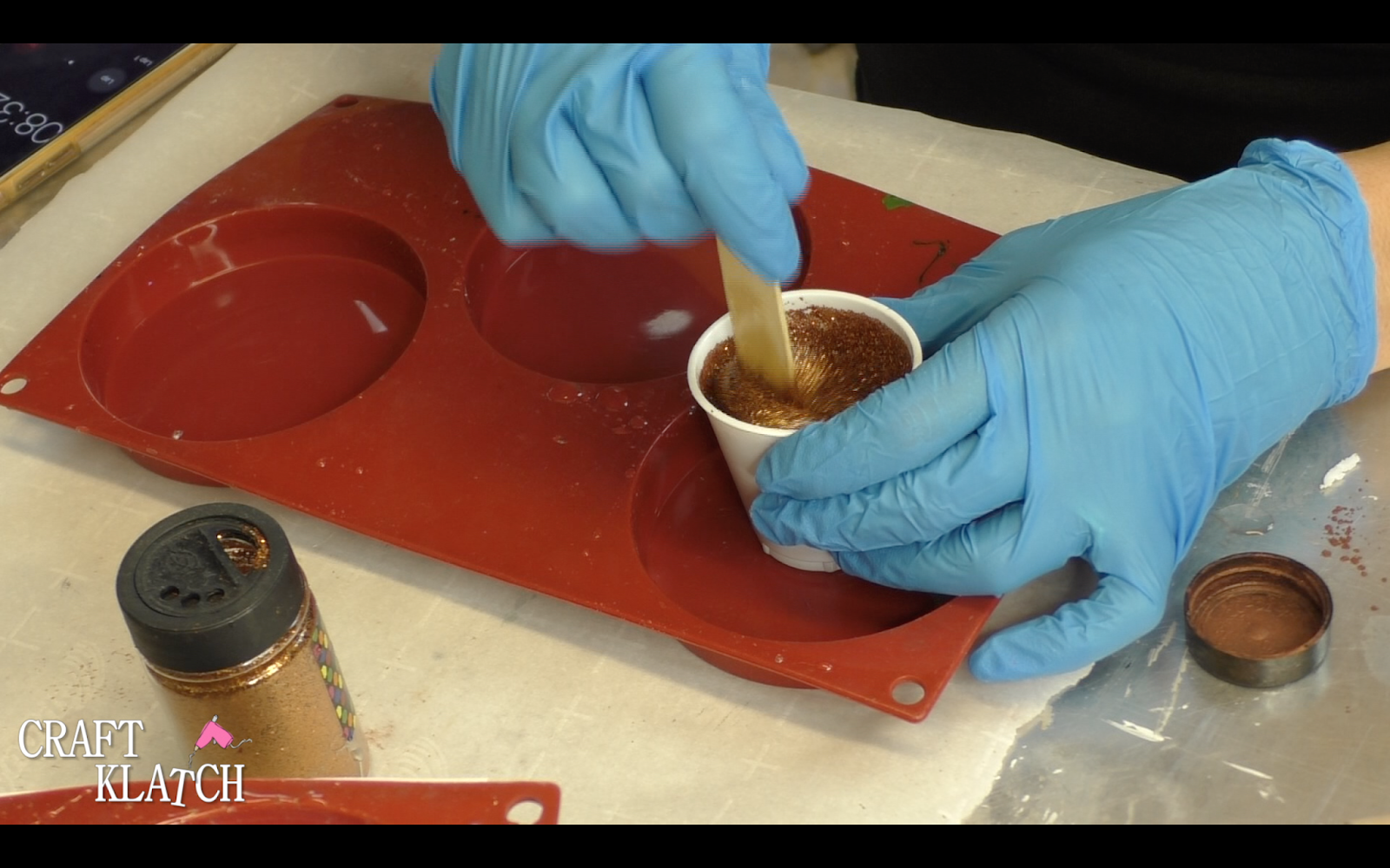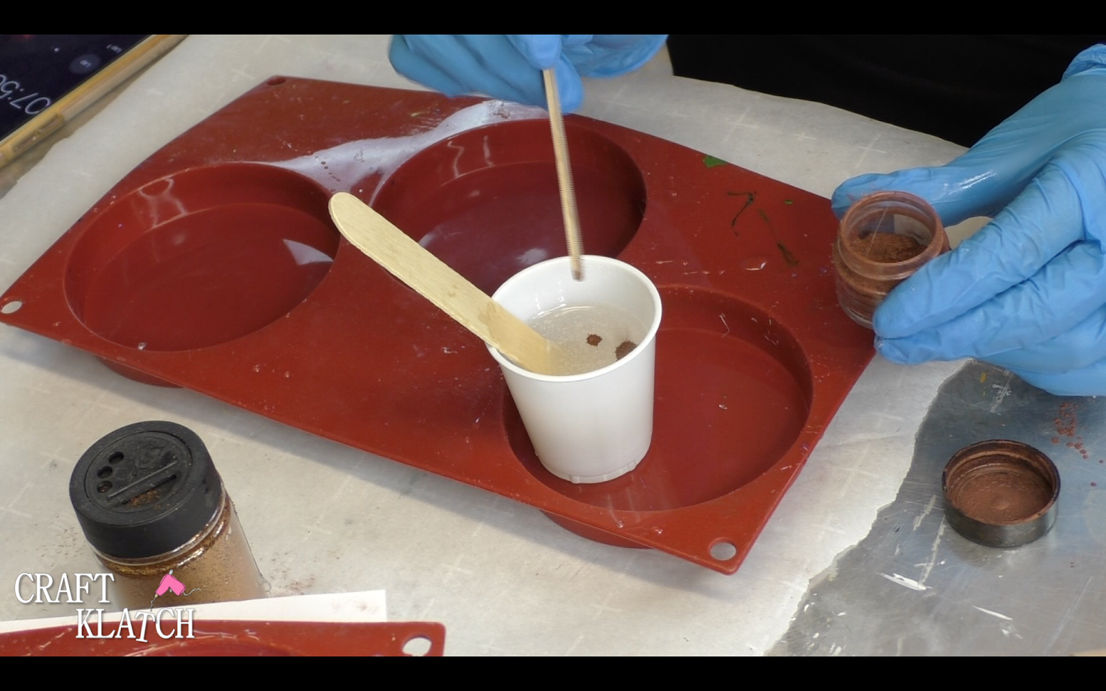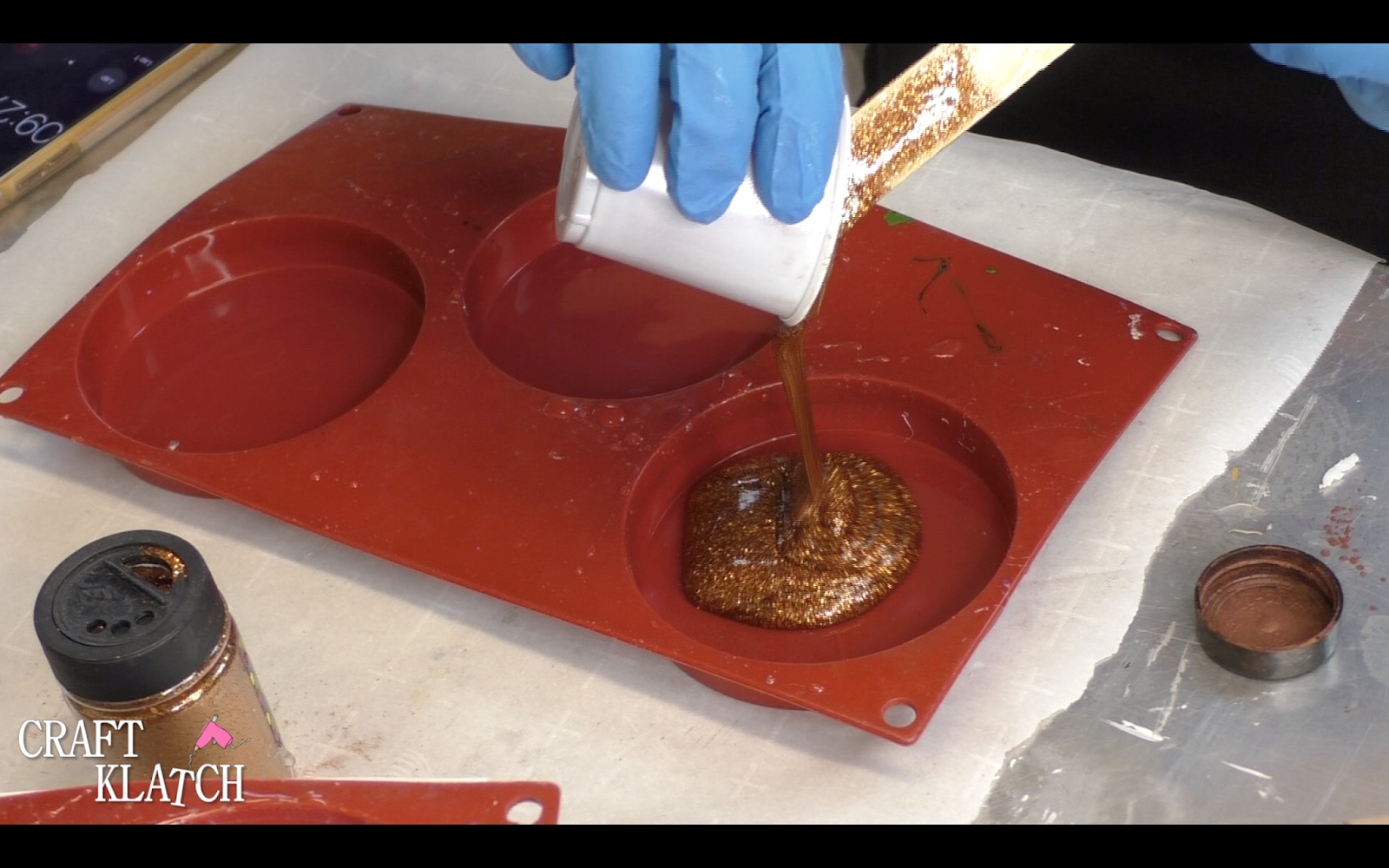 7. I mixed one ounce of resin and poured it onto the coaster.