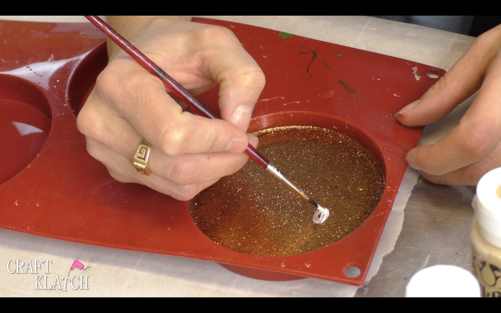 15. I sprinkled copper glitter onto the glue areas and shook off the excess.
