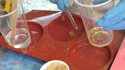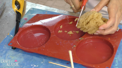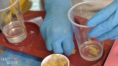 4. Put the pieces of sponge into the resin that is remaining in the cup. Let the pieces soak up the resin.