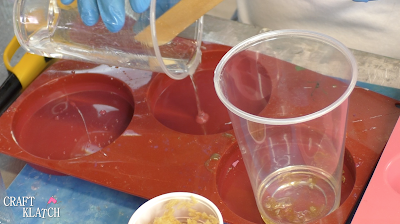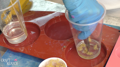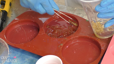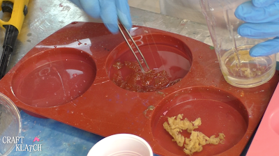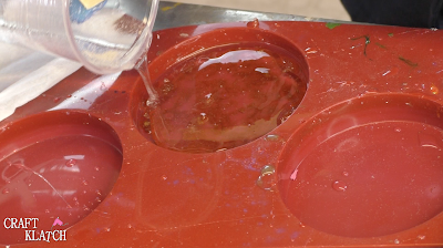 2. Mix 1.5 ounces of resin, according to the package directions. Pour enough of the resin into one cavity of the mold, to cover the bottom.