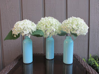 I had these bottles from some healthy juice, I can’t remember the brand, but it was in the refrigerated section of the produce aisle. I really loved the shape of the bottles and thought they would make really cute vases. My front porch needed a pop of color and they seemed to fit my needs.
